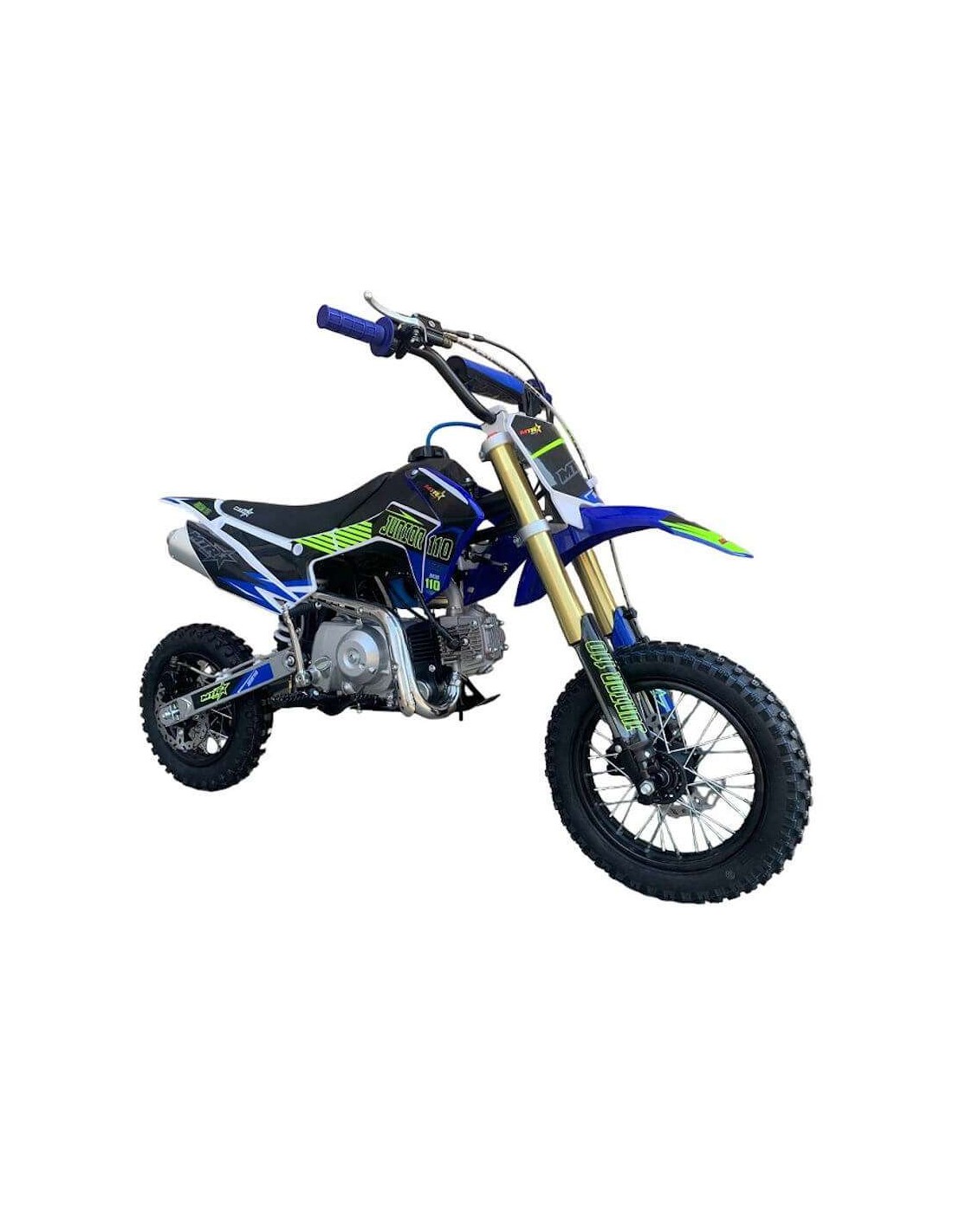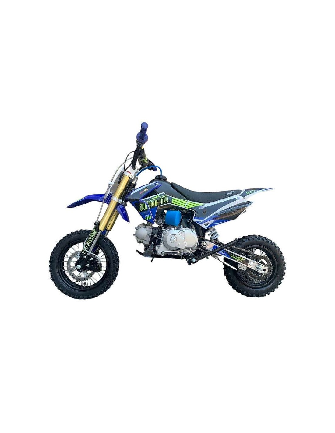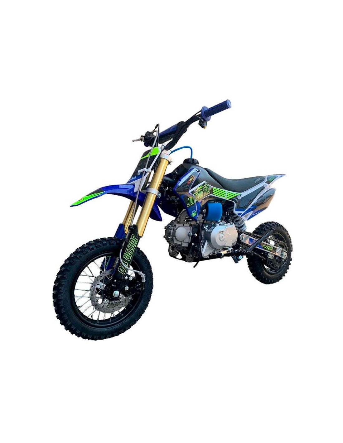 Las motos de cross baratas, como el caso de la Junior 110cc, está elaborada con más calidad para una mayor duración y además monta un amortiguador trasero de 270mm y horquilla invertida delantera, la cual es más larga que la Junior 90cc, para montar la rueda de 12"